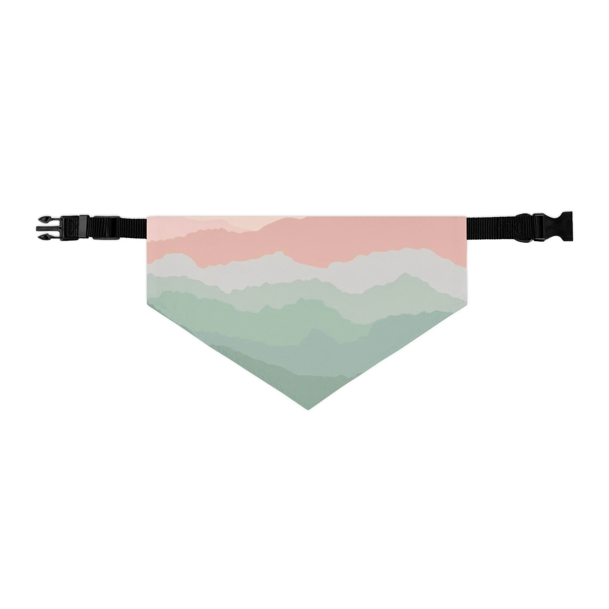 A soft, modern bandana collar that brings quiet color and gentle lines to your dog’s daily walks. The watercolor-style hills in muted blushs and sage greens wrap across a lightweight polyester face, giving a calm, artful look without weighing your pup down. The built-in adjustable black collar and quick-release buckle make dressing quick and secure, while hemmed edges keep the shape clean after many wears. It sits comfortably for neighborhood strolls, coffee runs, or lounging at home — a subtle way to show your dog’s style while staying practical and easy to care for.